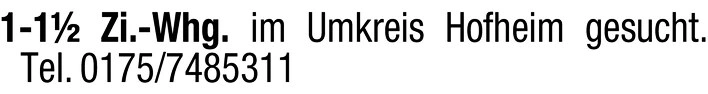 1-Zimmer-Wohnung im Umkreis Hofheim gesucht