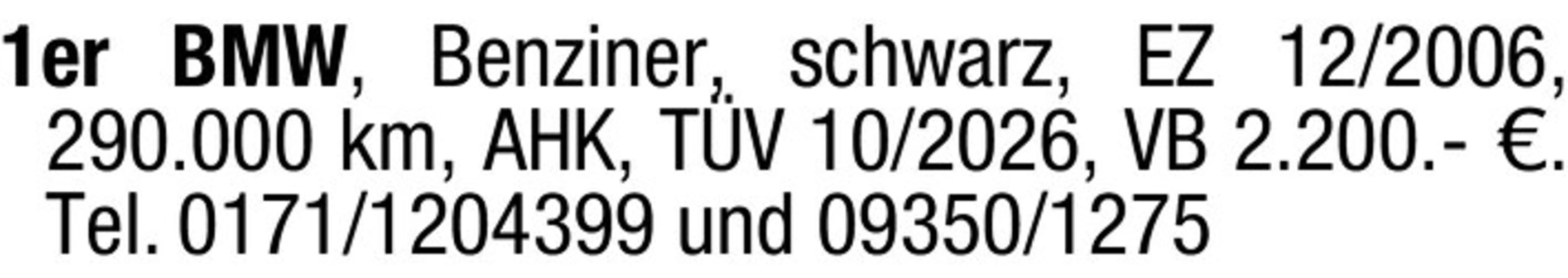1er BMW, schwarz, EZ 12/2006, 290.000 km