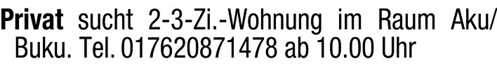 Privat sucht 2-3-Zi.-Wohnung im Raum Aku/Buku.