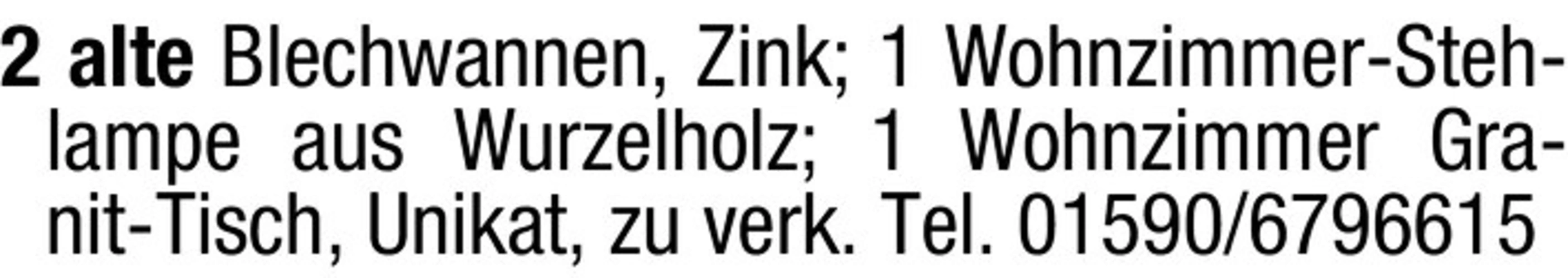 2 Blechwannen, Stehlampe und Granit-Tisch