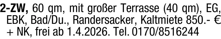 2-Zimmer 60qm mit 40qm Terrasse in Randersacker