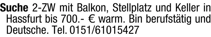 2-Zimmer mit Balkon, Stellplatz und Keller gesucht