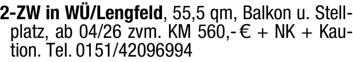 2-Zimmer-Wohnung in Würzburg/Lengfeld