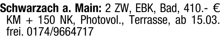 • Miete: 410,- + 150,- Nebenkosten