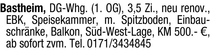 Bastheim, Dachgeschosswohnung (1. Obergeschoss)
