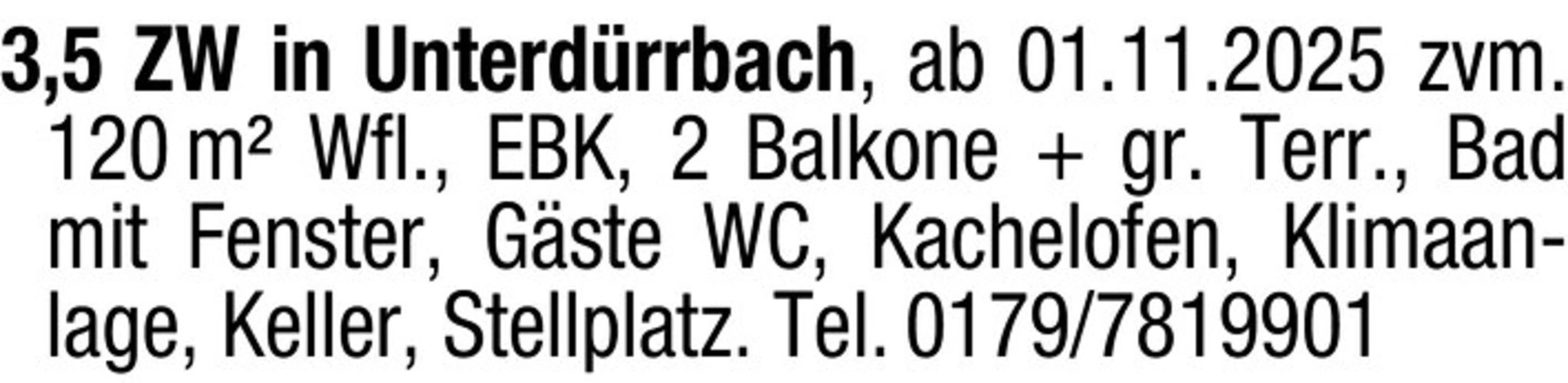 3,5-Zimmer-Wohnung in Unterdrrbach ab November 2025