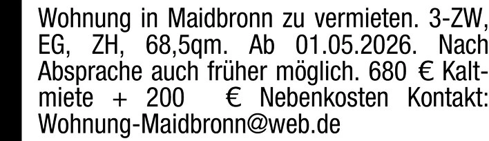 Kontakt: Wohnung-Maidbronn@web.de