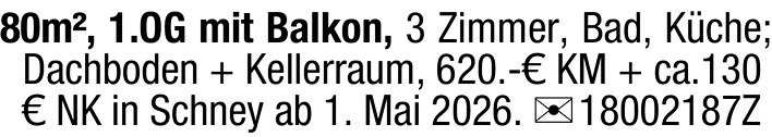 3-Zimmer Wohnung 80m² mit Balkon in Schney