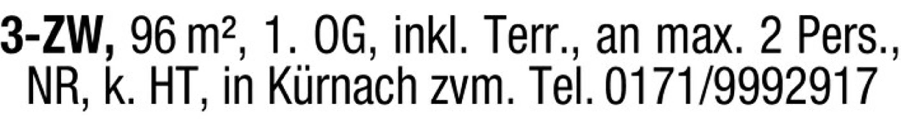 3-ZW, 96 m, 1. OG, inkl. Terr., an max. 2 Pers., NR, k. HT, in Krnach zvm. Tel. 0171/9992917