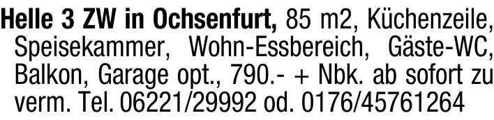 3-Zimmer-Wohnung Ochsenfurt, 85 m², Balkon, sofort frei