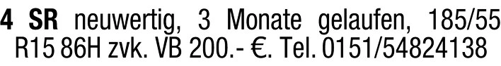4 SR Sommerreifen 185/55 R15 neuwertig