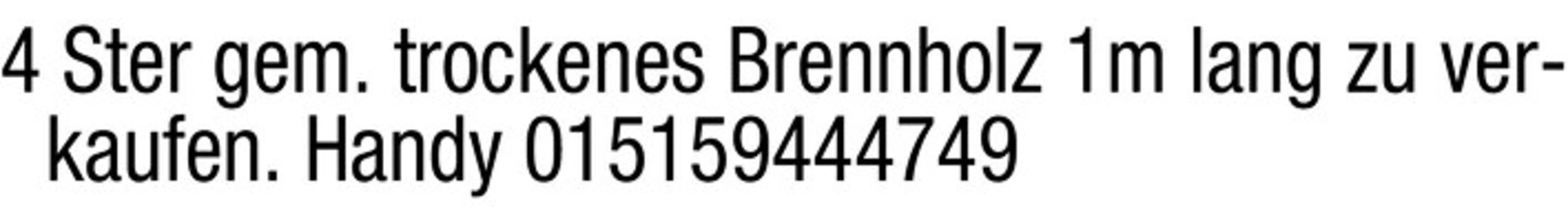 text 4 Ster gem. trockenes Brennholz 1m lang zu verkaufen. Handy 015159444749