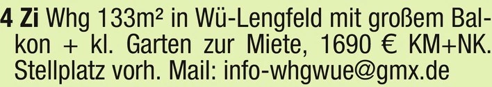 4 Zimmer Wohnung 133m² in W-Lengfeld mit großem Balkon + kleinem Garten zur Miete