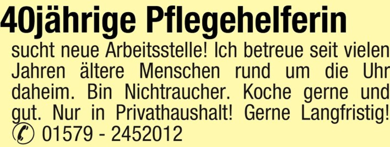 40jhrige Pflegehelferin sucht neue Arbeitsstelle!