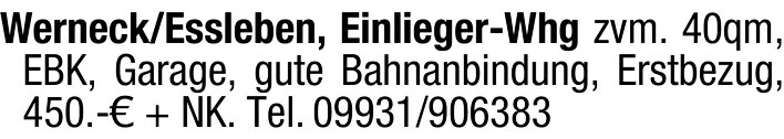 40qm Einlieger-Wohnung Werneck mit Garage und Bahnanbindung