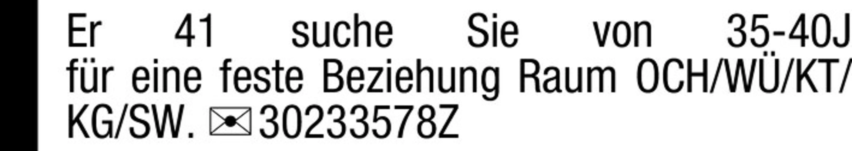 Er 41 suche Sie von 35-40J fr eine feste Beziehung Raum OCH/W/KT/KG/SW. Chiffre 30233578