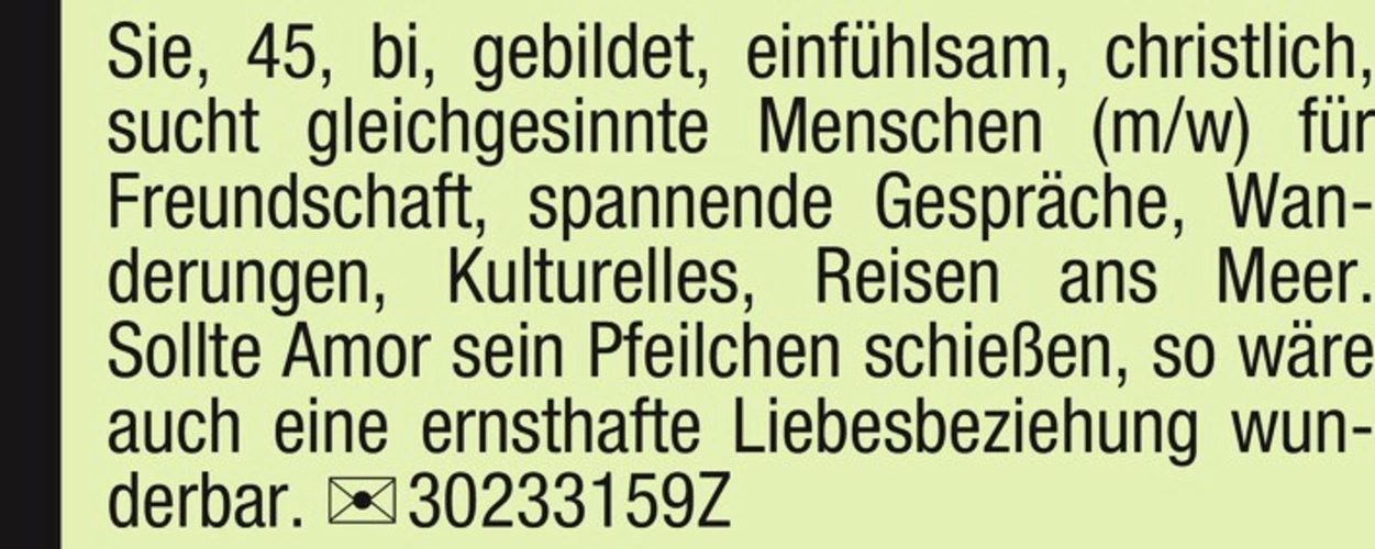 45-jährige bi, gebildet, einfühlsam, christlich sucht Freundschaft