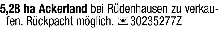 5,28 ha Ackerland bei Rödenhausen mit Rückpacht-Option