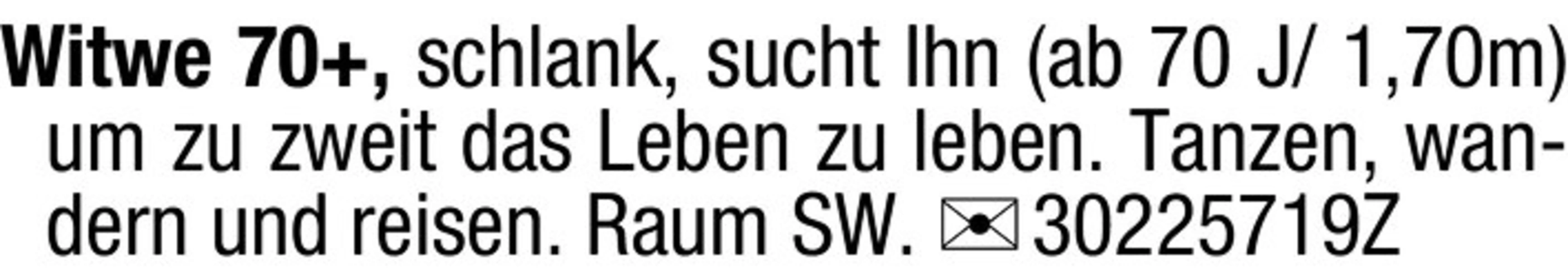 70-jährige Witwe sucht Partner für gemeinsame Aktivitäten