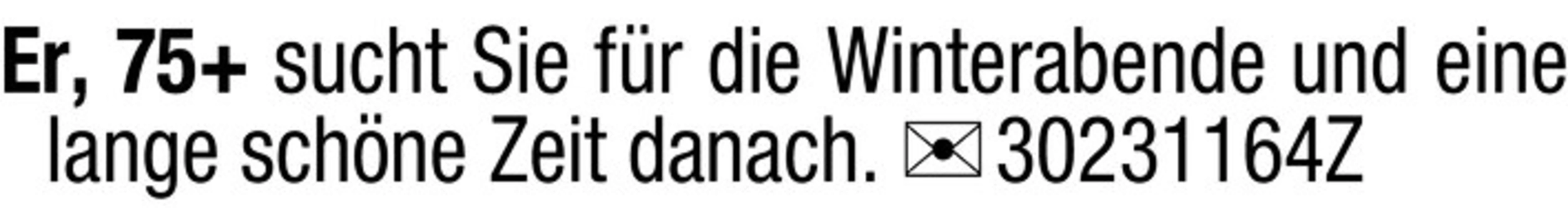Er, 75, sucht Sie für die Winterabende und eine lange schöne Zeit danach. Chiffre 30231164