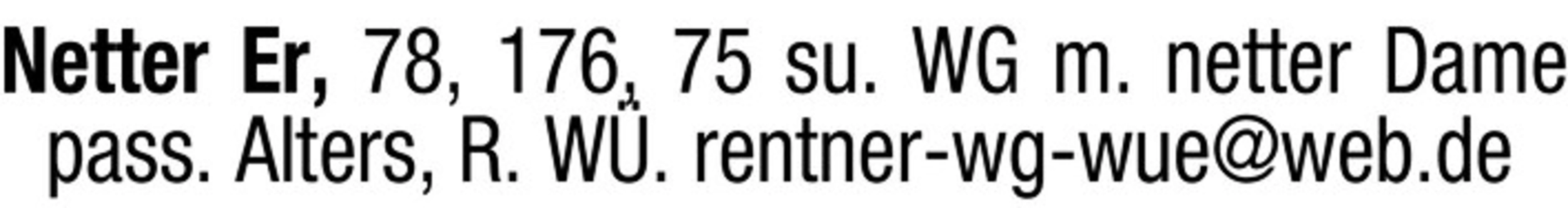 Netter Er, 78, 176, 75 su. WG m. netter Dame pass. Alters, R. W. rentner-wg-wue@web.de