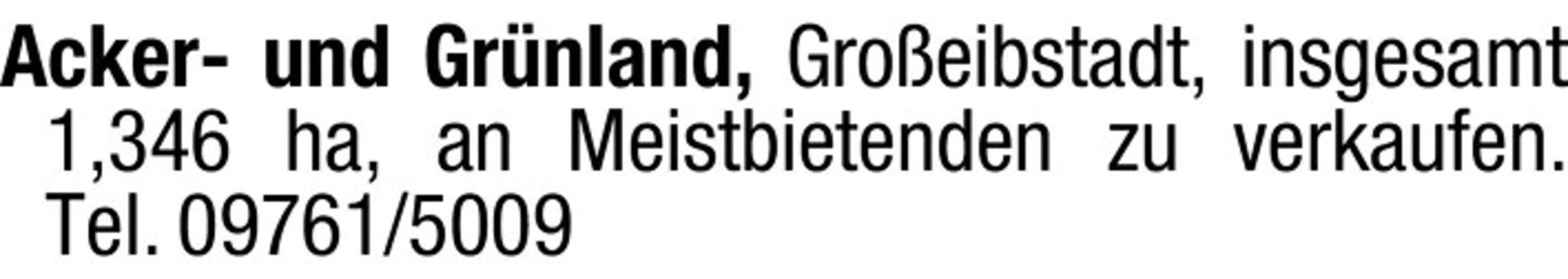 Acker- und Grünland, Groeibstadt, insgesamt 1,346 ha, an Meistbietenden.