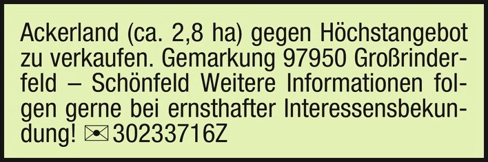 Ackerland (ca. 2,8 ha) gegen Höchstangebot zu verkaufen.