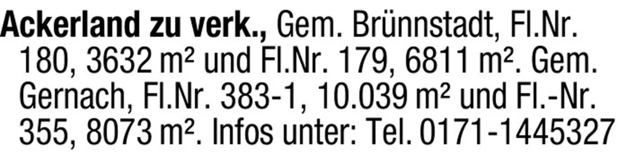 Ackerland in Brnnstadt und Gernach verfügbar
