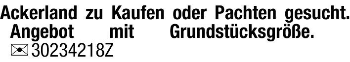 Ackerland zu Kaufen oder Pachten gesucht. Angebot mit Grundstcksgre. Chiffre 30234218