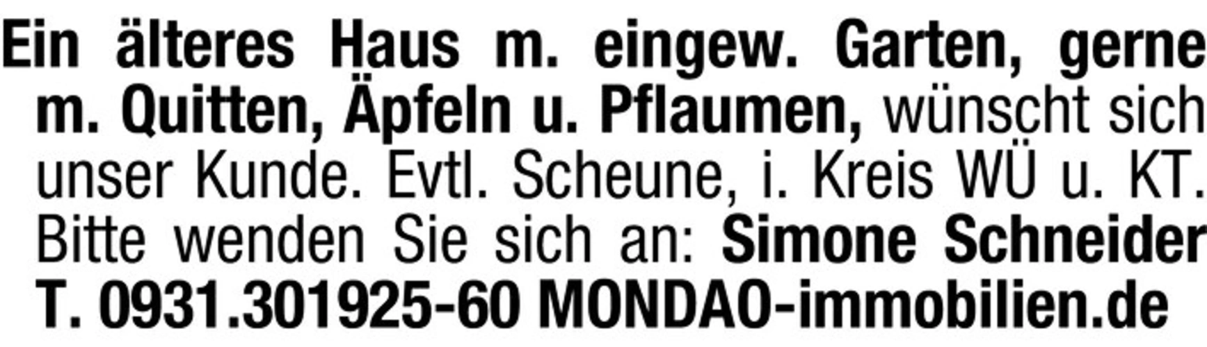 Bitte wenden Sie sich an: Simone Schneider T. 0931.301925-60 MONDAO-immobilien.de