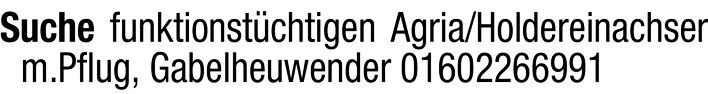 Suche funktionsfähigen Agria/Holder-Einachser mit Pflug und Gabelheuwender