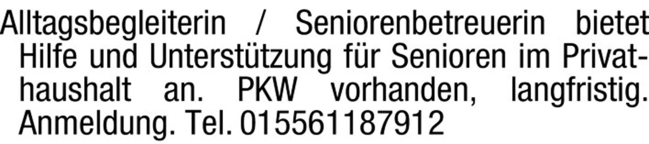 Alltagsbegleiterin / Seniorenbetreuerin bietet Hilfe und Untersttzung fr Senioren im Privathaushalt an.