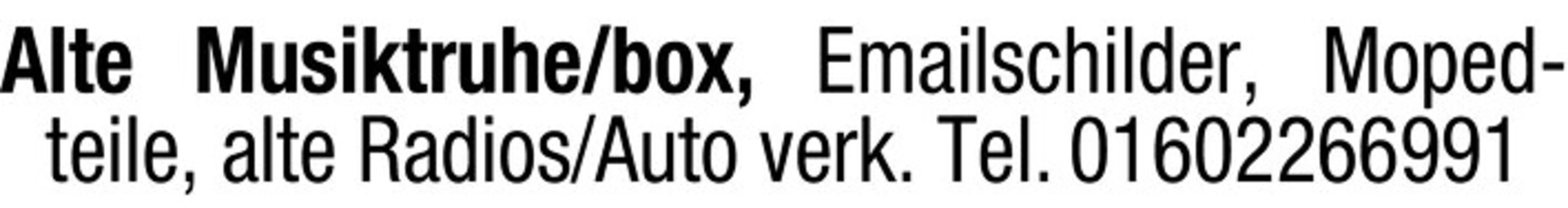 Alte Musiktruhe/box, Emailschilder, Mopedteile, alte Radios/Auto verk. Tel. 01602266991