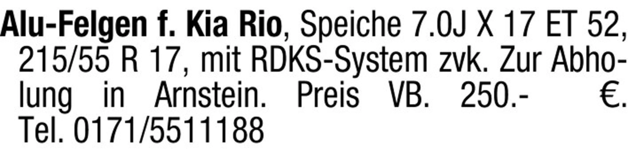 Alu-Felgen für Kia Rio in Arnstein