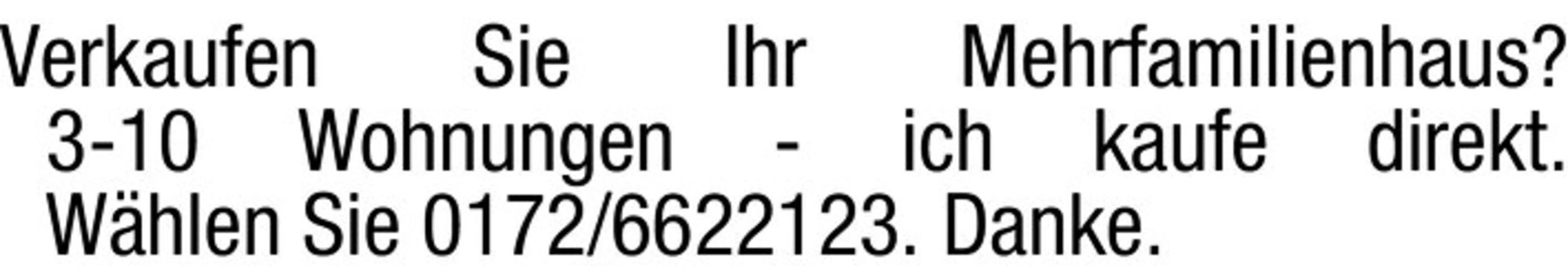 Verkaufen Sie Ihr Mehrfamilienhaus? 3-10 Wohnungen - ich kaufe direkt. Wählen Sie 0172/6622123. Danke.