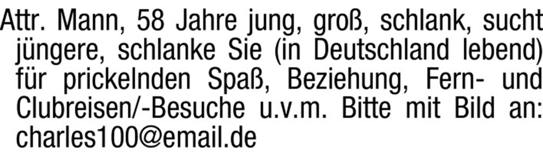 Gro, schlank, sucht jüngere, schlanke Sie (in Deutschland lebend) für prickelnden Spaß, Beziehung, Fern- und Clubreisen/-Besuche u.v.m.