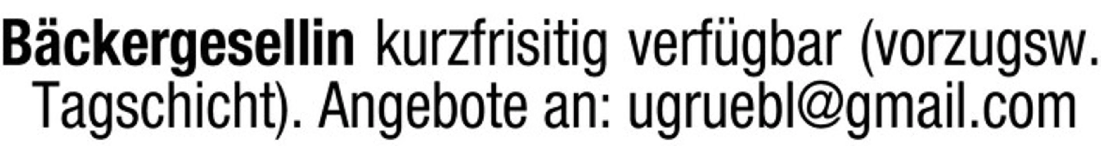 Bäcker Gesellin kurzfristig verfügbar (vorzugsweise Tagschicht). Angebote an: ugruebl@gmail.com