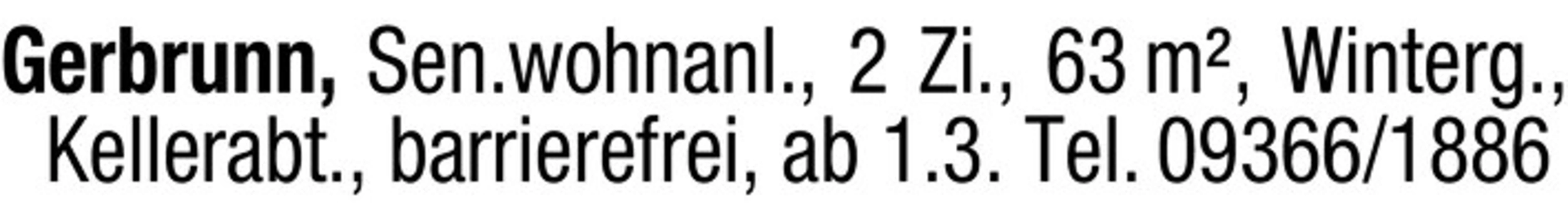 Gerbrunn, Sen.wohnanl., 2 Zi., 63 m, Winterg., Kellerabt., barrierefrei, ab 1.3. Tel. 09366/1886