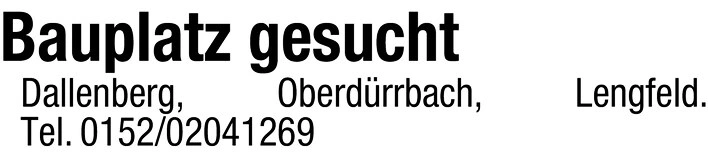 Bauplatz gesucht Dallenberg, Oberdrrbach, Lengfeld.