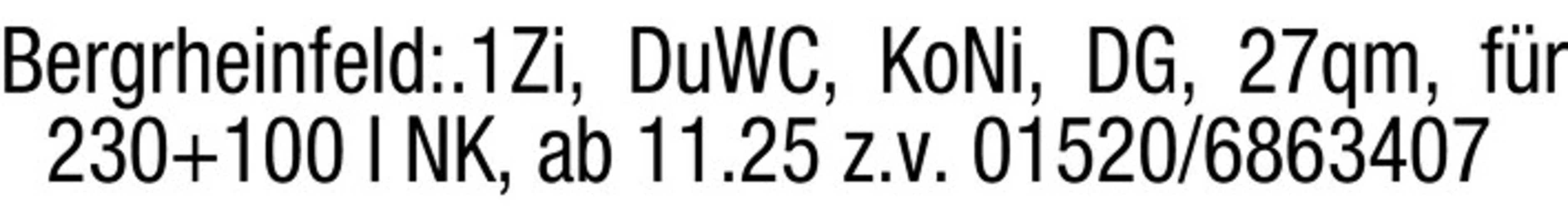 Bergrheinfeld:.1Zi, DuWC, KoNi, DG, 27qm, fr 230 100 I NK, ab 11.25 z.v. 01520/6863407