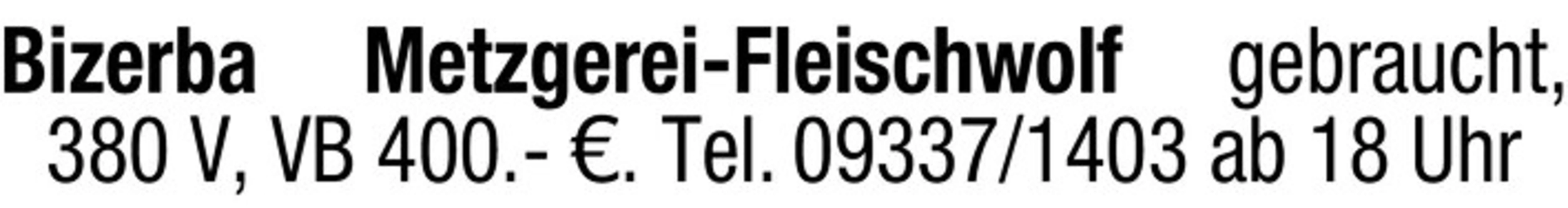 Bizerba Metzgerei-Fleischwolf, 380 V, VB 400,-