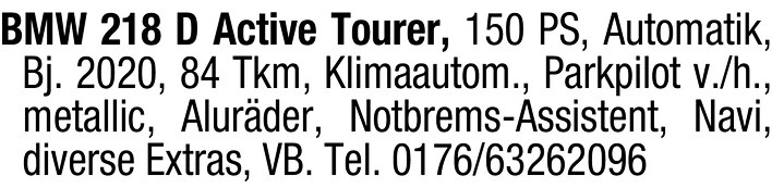 BMW 218 D Active Tourer 2020, 150 PS, 84 Tkm