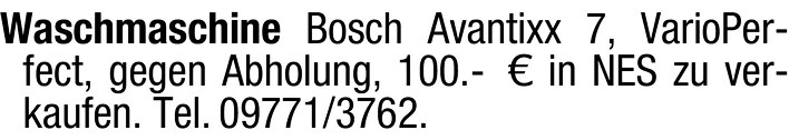 Waschmaschine Bosch Avantixx 7, VarioPerfect, gegen Abholung, 100.- in NES zu verkaufen.