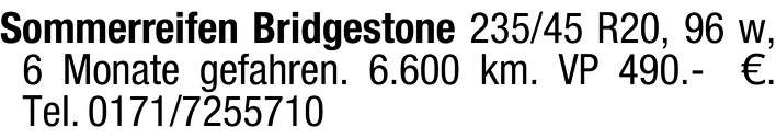 Bridgestone Sommerreifen 235/45 R20 kaum genutzt