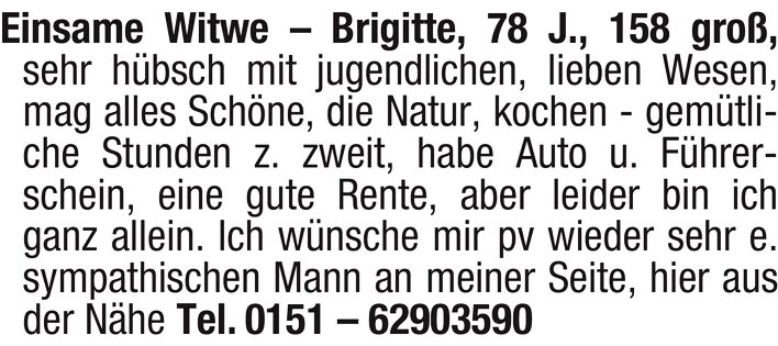 Einsame Witwe - Brigitte, 78 Jahre