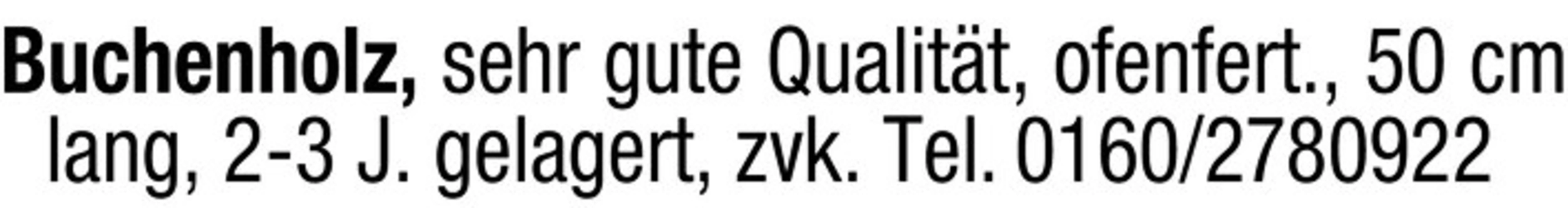 Buchenholz, sehr gute Qualität, ofenfertig, 50 cm lang, 2-3 Jahre gelagert, zvk. Tel. 0160/2780922