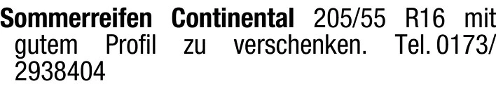 Continental Sommerreifen 205/55 R16 kostenlos abzugeben
