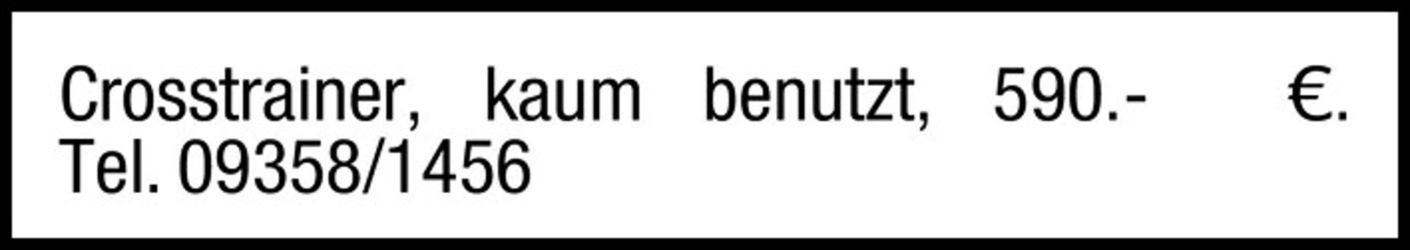 Crosstrainer, kaum benutzt, 590.- . Tel. 09358/1456