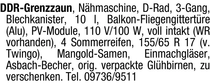 DDR-Grenzzaun, Nähmaschine, Motorrad und mehr verschenken