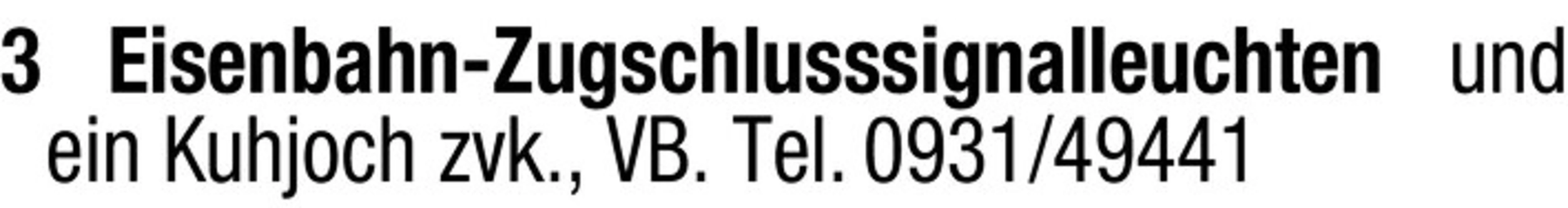 3 Eisenbahn-Zugschlusssignalleuchten und ein Kuhjoch zvk., VB. Tel. 0931/49441
